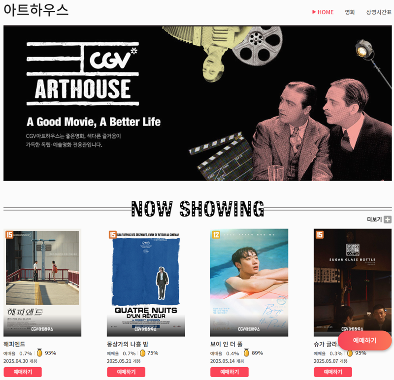 영화는 일상에 즐거움을 더해주는 좋은 취미입니다. 특히 CGV에서는 매번 새롭고 다양한 한국 영화를 쉽게 확인하고 예매까지 할 수 있어 많은 분들이 찾고 계십니다. 앞으로도 CGV 홈페이지를 통해 좋은 작품 많이 만나보시길 바랍니다.