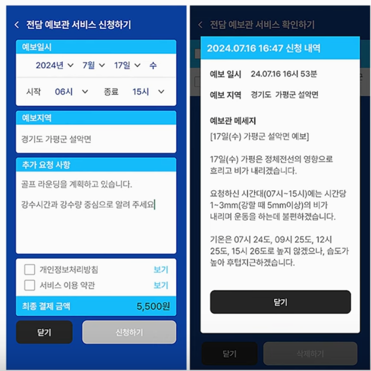 3. 새롭게 추가된 전담 예보관 서비스는 운동, 캠핑, 여행 등 상황에 맞춘 날씨 정보를 알려줘요. 개인 일정에 맞게 미리 알림도 받을 수 있어 야외 활동 계획 세우기 전에 유용합니다.