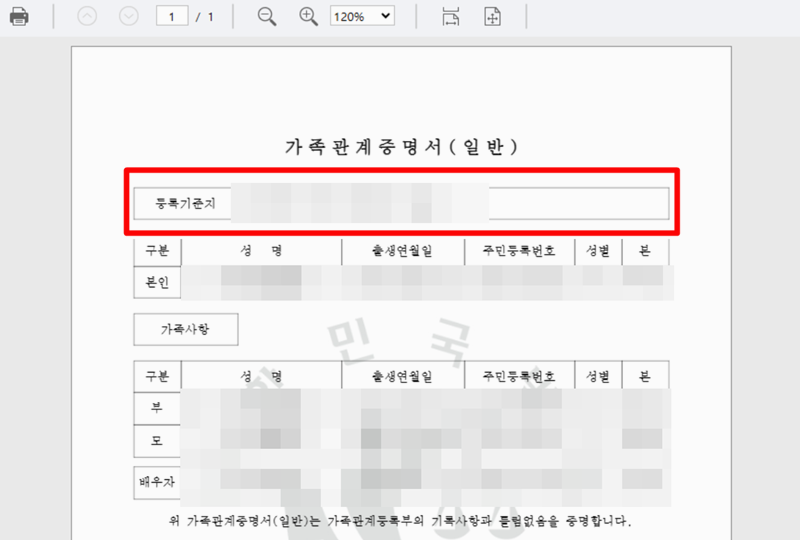 5. 가족관계증명서가 발급되면 문서 안에서 등록기준지를 확인할 수 있어요. 보통 상단 부분이나 가족사항 항목 옆쪽에 표시되니 확인만 해두셔도 여러 상황에서 도움이 됩니다.