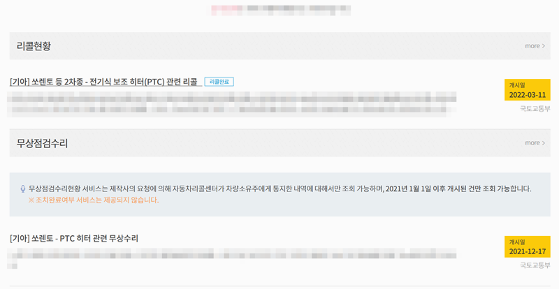 4. 만약 리콜 대상이라면 어떤 부위에 문제가 발생했는지 안내해줍니다. 단순히 대상 여부만 알려주는 게 아니라 어느 부분이 문제인지 상세하게 알려주니 차량 점검 계획 세우는 데도 도움이 됩니다.