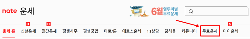 4. 중앙일보 외에도 이름 궁합을 볼 수 있는 곳은 많습니다. 예를 들어 네이트에서도 이름 궁합을 쉽게 찾아볼 수 있는데 네이트 운세 항목에서 무료 운세 메뉴를 선택하면 바로 확인할 수 있습니다.