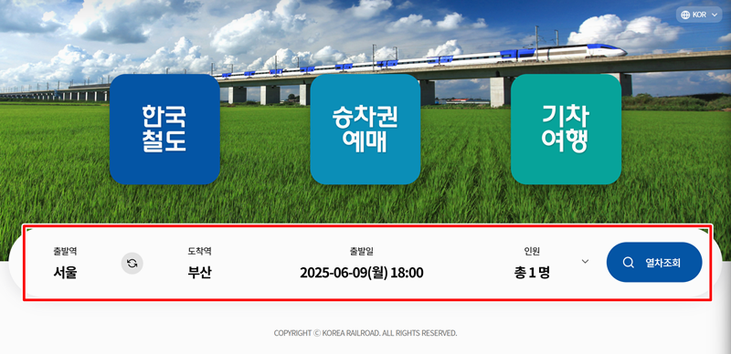1. 출발지와 도착지를 입력하고 날짜와 시간을 정하면 원하는 조건으로 열차를 찾을 수 있고 다음 단계에서 시간표 조회가 가능합니다.
