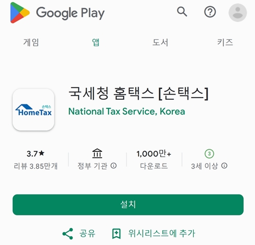 [국세청 손택스 앱 다운로드 - https://play.google.com/store/apps/details?id=kr.go.nts.android]
