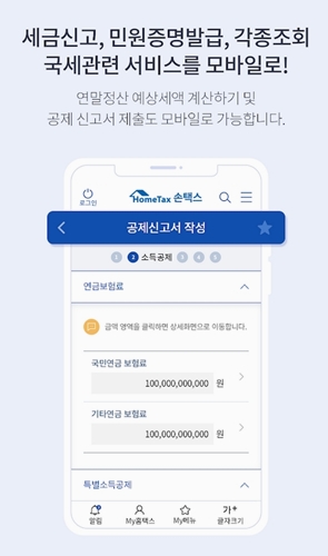국세청 손택스는 모바일에서 세금과 관련된 다양한 업무를 간단하게 처리할 수 있는 앱입니다. 인증서 등록부터 민원 서류까지 앱 하나로 해결할 수 있어 실용성이 높습니다. 국세청 손택스 앱은 구글 플레이스토어에서 받을 수 있습니다.