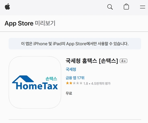 국세청 손택스 앱 바로가기