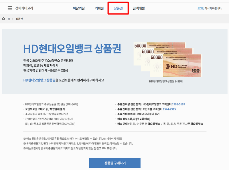 9. 포인트를 이용해 상품권도 구매할 수 있어요. 대표적으로 5만 원권이 있고, 몰에서 간단하게 선택해서 받을 수 있는 방식이에요.