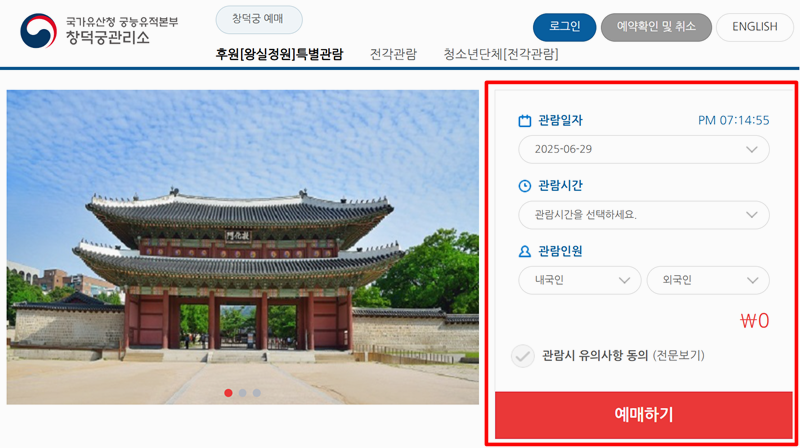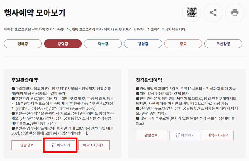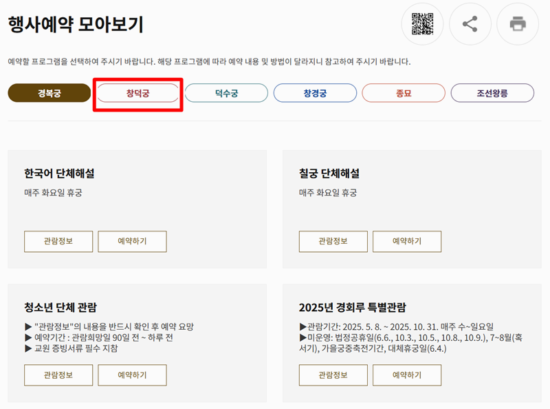 [궁능유적본부 통합예약 시스템 - https://royal.khs.go.kr]