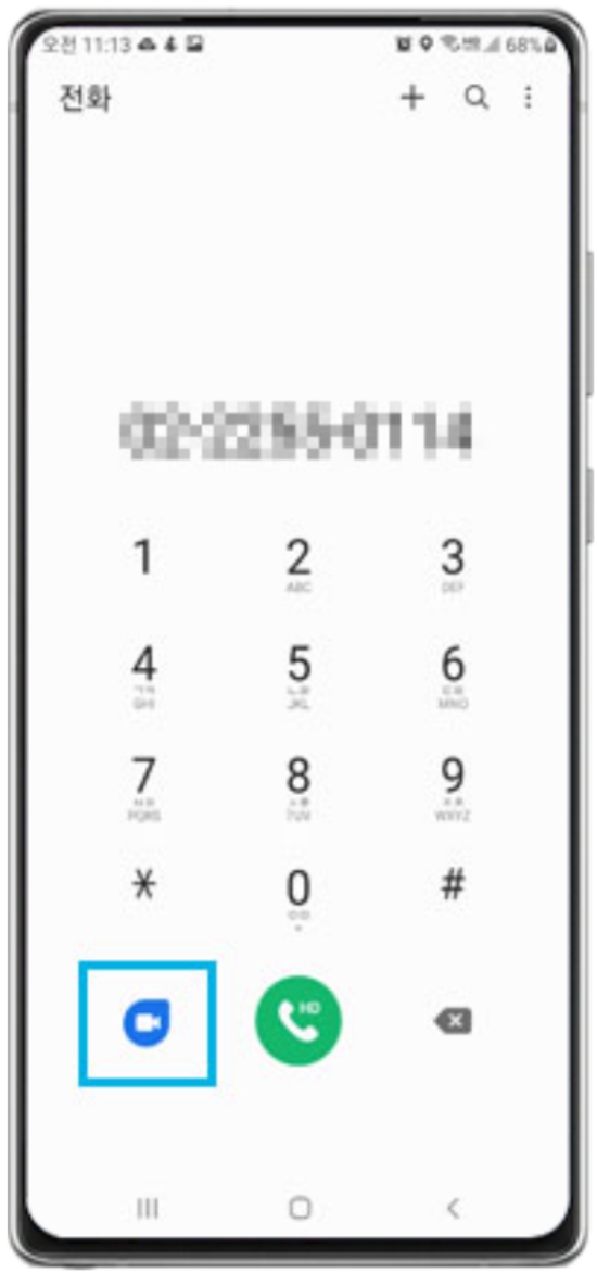 2. 번호를 입력하고 나면 화면 아래에 영상통화를 할 수 있는 파란 아이콘이 함께 보여집니다. 이걸 누르면 바로 영상통화를 시작할 수 있어요.