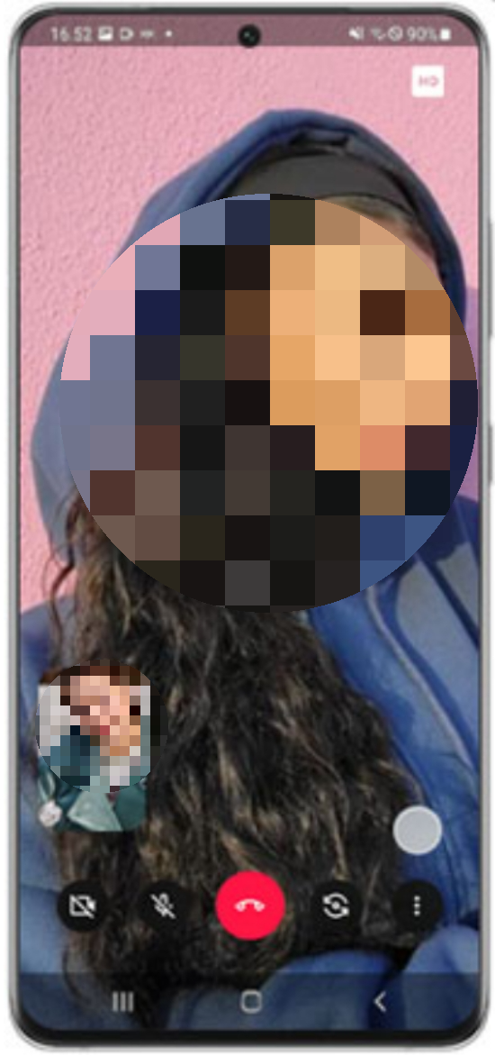 4. 연결이 되면 영상통화 화면이 열리면서 상대방과 얼굴을 마주 보며 통화할 수 있어요. 상단에 HD 표시도 함께 확인할 수 있어요.