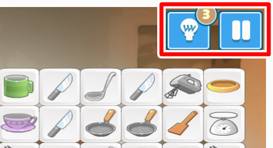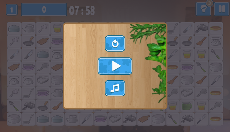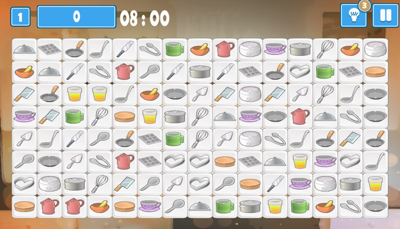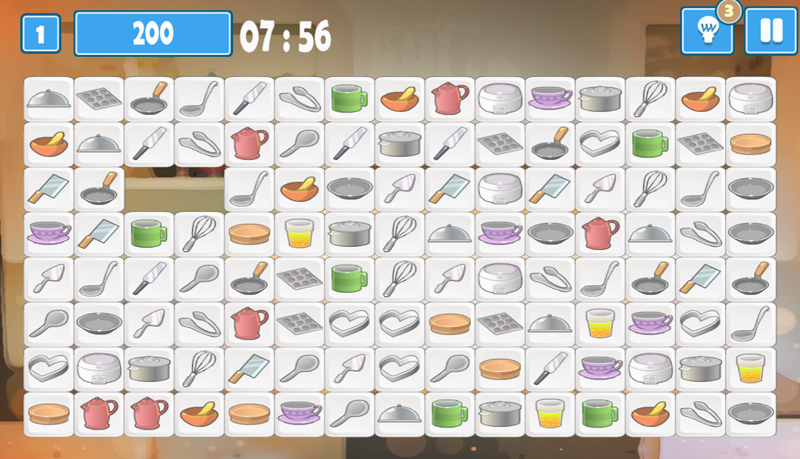 3. 게임이 시작되면 다양한 주방기구들이 타일 형태로 배열돼 있어요. 같은 그림 두 개를 연결해 짝을 맞추는 방식으로 진행돼요.