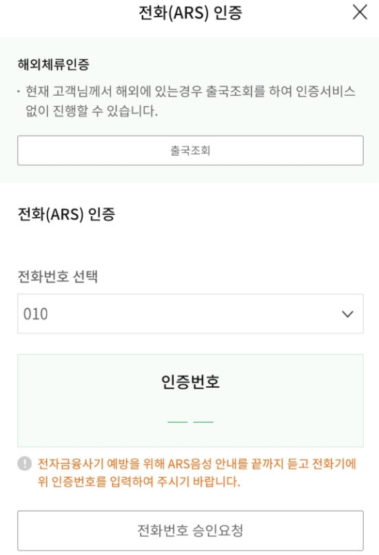 6. 다음은 전화로 본인임을 확인하는 과정이에요. 인증받을 전화번호를 선택하고 승인 요청을 한 뒤, 걸려온 전화의 안내에 따라 화면에 보이는 번호를 입력해 주세요.