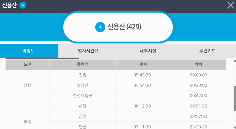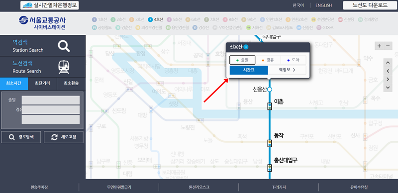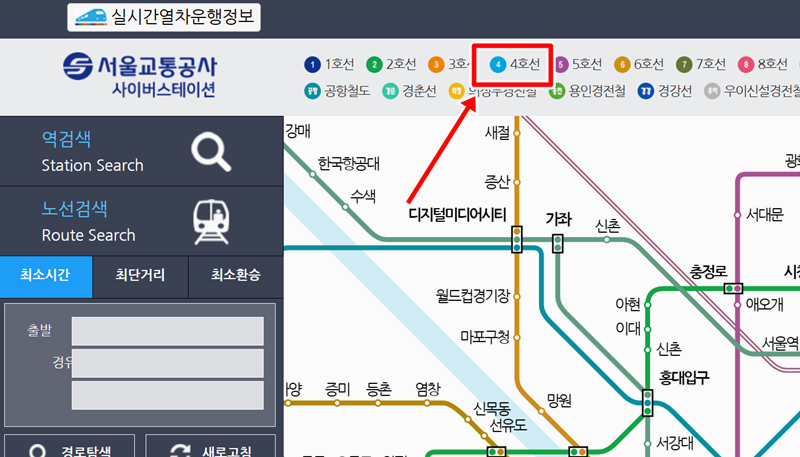 전철 4호선 노선도 시간표 조회