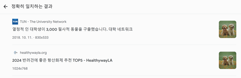 4. '이미지 소스 찾기'를 선택하면, 내가 올린 것과 똑같은 사진이 사용된 다른 웹사이트들의 목록이 나타납니다. 이 사진이 어디서 왔는지 궁금할 때 유용하겠죠.