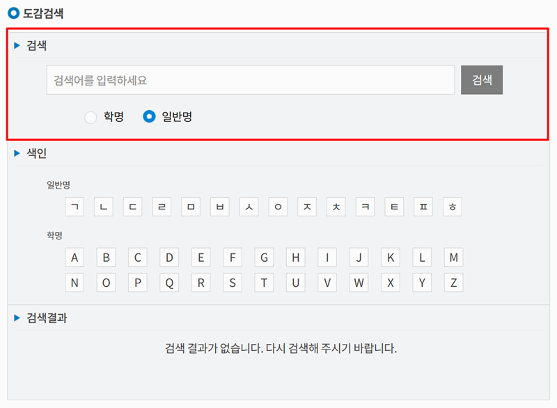 2. 도감검색 페이지에는 검색창이 마련되어 있습니다. 내가 알고 싶은 버섯의 일반명이나 학명을 입력하여 원하는 정보를 정확하고 빠르게 찾을 수 있습니다.