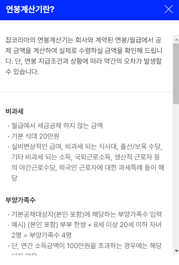 6. 마지막으로 잡코리아 연봉계산기는 연봉 지급조건 및 상황에 따라 오차가 발생할 수 있으며 이 점 참고 바랍니다.