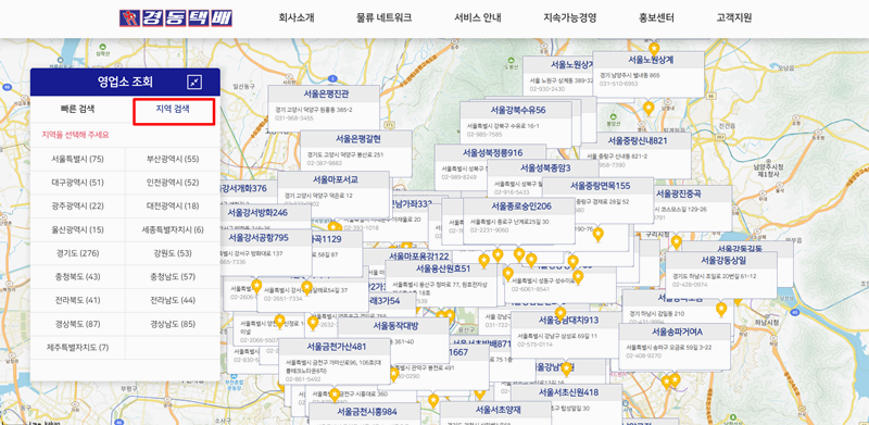 크고 무거운 화물을 보낼 때 필요한 주변 지점의 위치나 연락처 등 상세한 내역을 찾는 것을 말합니다. 경동화물 영업소 조회는 경동택배 홈페이지에서 이용 가능 합니다.
