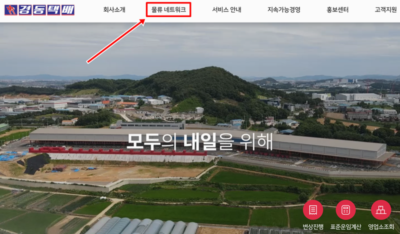 1. 홈페이지 상단에 있는 여러 메뉴 중에서 '물류 네트워크'라는 항목을 찾아주세요. 회사소개, 서비스 안내 등 다양한 항목들 옆에 위치해 있으며, 이곳을 통해 전국의 물류망과 관련된 정보를 확인할 수 있는 첫 단계입니다.