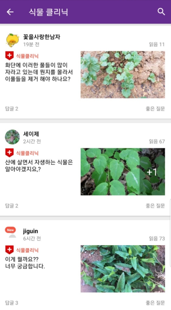 8. 단순히 이름을 찾는 것 외에도 '식물 클리닉' 공간을 활용할 수 있습니다. 화단에 자라는 풀의 정체가 궁금하거나 키우는 식물의 상태가 좋지 않을 때 사진과 함께 글을 올리면, 다른 이용자들로부터 유용한 조언을 얻을 수 있습니다.