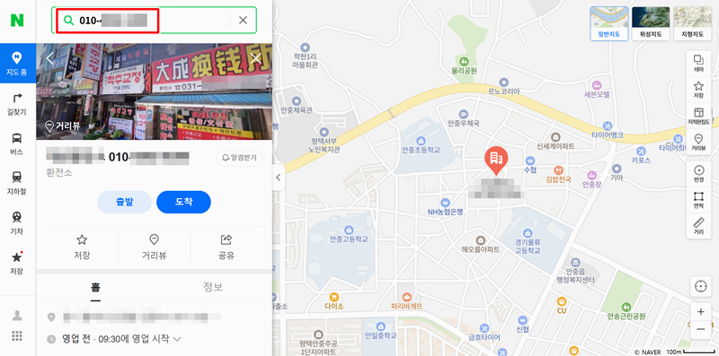 6. 지도 검색창에 '010-XXXX-XXXX'처럼 찾고 싶은 전화번호를 직접 넣어보세요. 일반적인 장소 이름 검색과 마찬가지로, 연락처만으로도 해당 번호가 등록된 위치를 찾을 수 있어 매우 간편한 기능입니다.