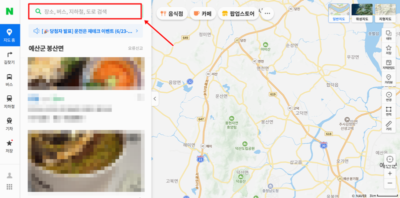 5. 다른 방법으로는 지도를 활용하는 것입니다. 지도 앱을 열고 상단에 있는 검색창을 활용해 보세요. 이곳에는 장소 이름뿐만 아니라 버스나 지하철 같은 대중교통 정보도 찾을 수 있어 다용도로 활용하기 좋습니다.