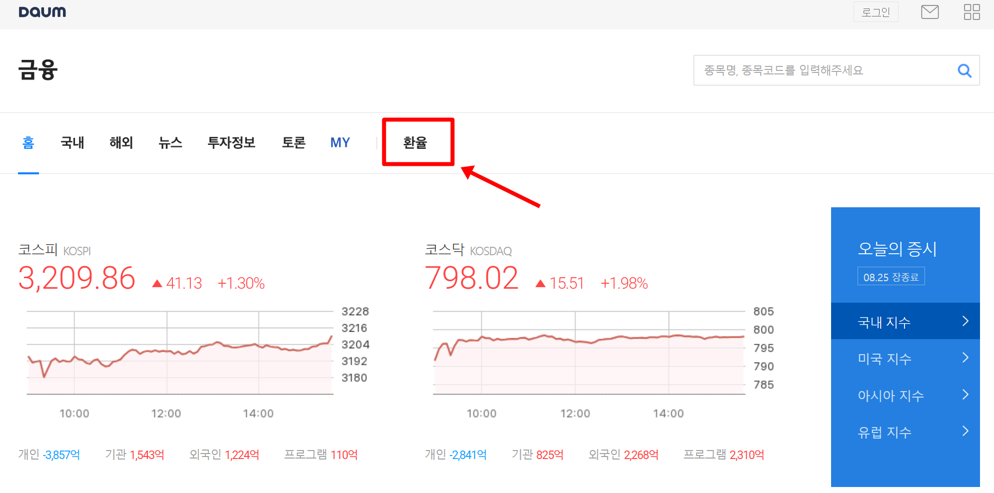 1. 금융 페이지 상단에 있는 여러 메뉴 중에서 '환율' 항목을 선택하면 관련 정보를 확인할 수 있는 화면으로 이동하게 됩니다. 이곳에서는 국내외 증시 현황과 함께 다양한 경제 지표를 살펴볼 수 있어 편리해요.
