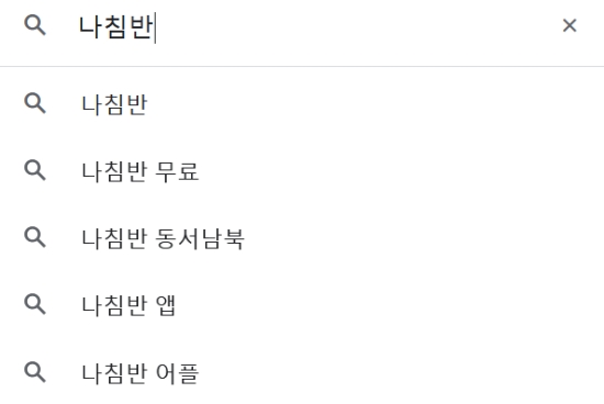 3. 활성화된 검색창에 '나침반'이라고 글자를 입력해 보세요. 입력하는 동안 관련된 여러 추천 검색어들이 아래에 나타나지만, 가장 기본적인 단어만으로도 충분히 원하시는 결과를 얻을 수 있습니다. 정확하게 입력했다면 이제 검색을 진행하여 스마트폰에 알맞은 나침반을 찾아볼 시간입니다.