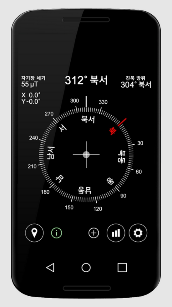6. 설치가 완료된 나침반을 실행하면 현재 내가 바라보는 방향이 몇 도인지, 그리고 동서남북 중 어디를 가리키는지 즉시 화면에 나타납니다. 이를 통해 현재 위치에서 가고자 하는 곳의 방향을 쉽게 파악할 수 있습니다. 복잡한 조작 없이도 직관적으로 정보를 확인할 수 있는 것이 큰 장점입니다.
