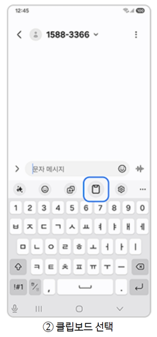 1. 메시지나 메모장처럼 글자를 입력할 수 있는 곳을 열면 키보드가 나타납니다. 이때 키보드 위쪽을 보면 여러 가지 그림이 나열된 것을 볼 수 있는데, 여기서 서류 모양의 아이콘을 찾아 눌러주세요. 이 아이콘이 보이지 않는다면 점 세 개 모양을 눌러 숨겨진 항목 중에서 찾을 수 있습니다.