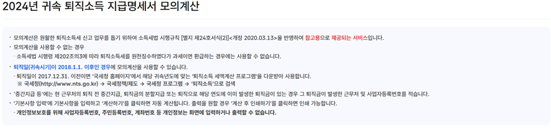 [ 퇴직금 세금 자동 계산기 - https://hometax.go.kr/taxcalcul]