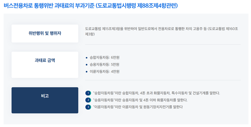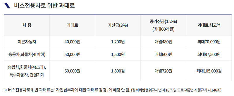 버스전용차로 위반 범칙금