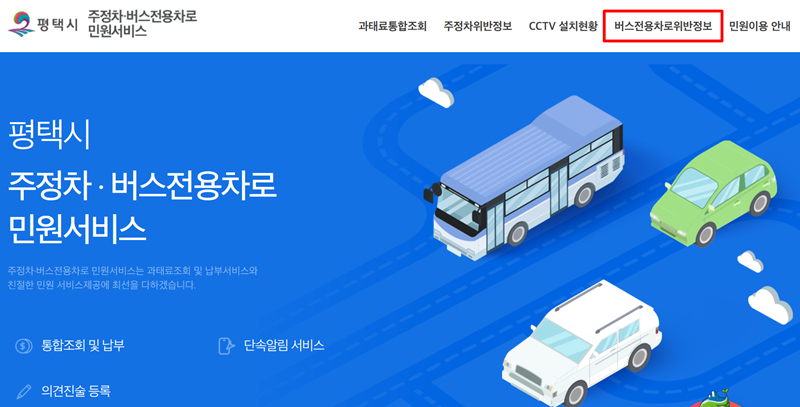 5. 일부 지자체에서는 '주정차·버스전용차로 민원서비스'와 같은 별도의 홈페이지를 운영하기도 합니다. 이러한 홈페이지에서는 버스전용차로 위반과 관련된 정보를 더욱 체계적으로 제공하며, 상단 메뉴의 '버스전용차로위반정보'를 통해 관련 내용을 찾아볼 수 있습니다.