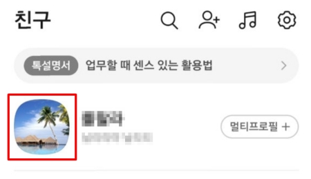 6. 만약 사진을 잘못 올렸다면 삭제도 간단해요. 프로필 사진을 눌러 크게 본 다음, 우측 상단 썸네일을 선택하세요. '나의 프로필사진' 목록에서 지우고 싶은 사진의 메뉴를 열어 '삭제'를 선택하면 깔끔하게 정리됩니다.