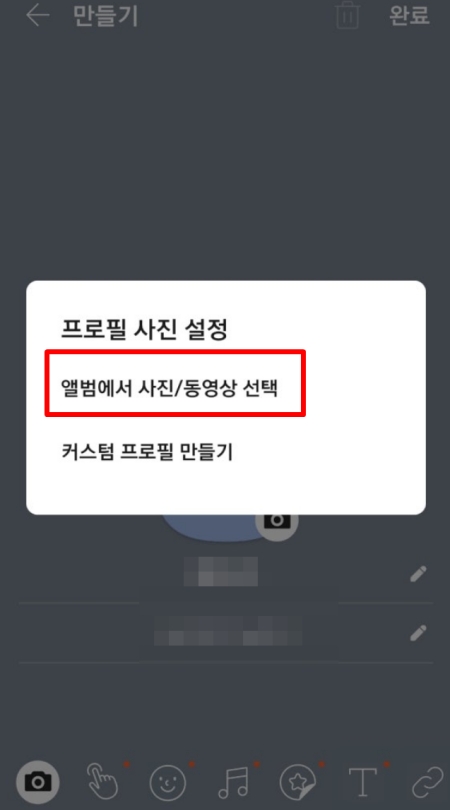 2. 프로필 사진을 누르면 '프로필 사진 설정' 창이 나타납니다. 여기서 '앨범에서 사진/동영상 선택' 항목을 골라주세요. 기존 사진을 바꾸거나 새로운 사진을 추가하고 싶을 때 이 경로를 기억해두면 편리해요.