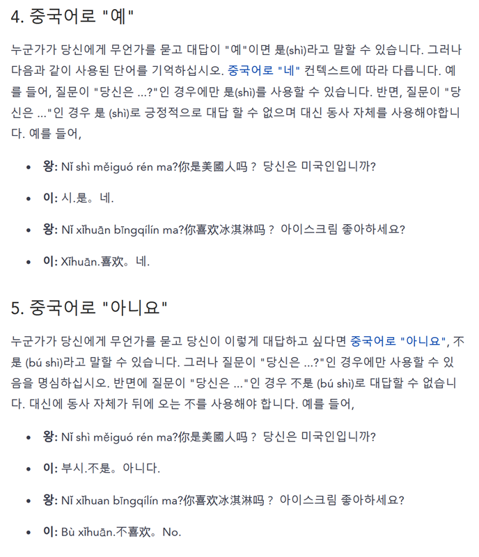 7. 이어서 긍정과 부정을 나타내는 예와 아니요 같은 기본적인 답변 방법도 배울 수 있습니다. 간단한 예시 대화문과 함께 설명되어 있어 어떤 상황에서 어떻게 사용해야 하는지 쉽게 이해할 수 있도록 도와줍니다.