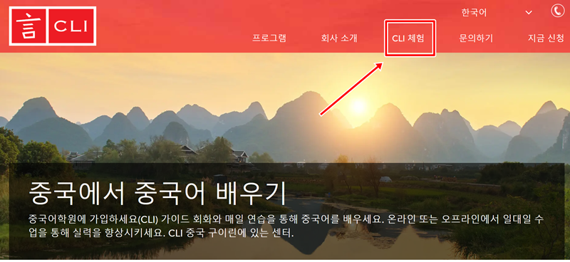 1. 홈페이지 상단 메뉴에서 'CLI 체험' 항목을 찾아 들어가면 중국어 학습과 관련된 다양한 경험을 살펴볼 수 있는 페이지로 이동하게 됩니다. 이곳에서는 프로그램에 참여했던 사람들의 후기나 센터에 대한 소개 등 여러 정보를 확인할 수 있어 학습을 시작하기 전 둘러보기에 좋습니다.