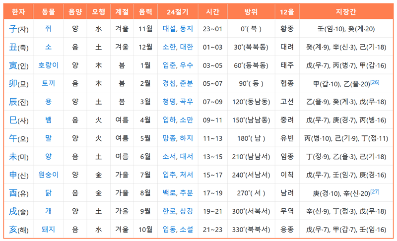 십이간지 순서 한자