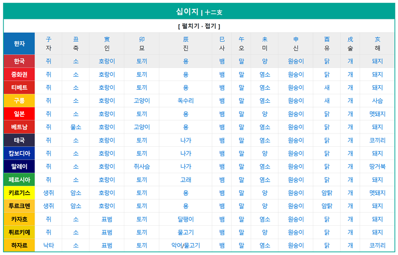 2. 우리에게 익숙한 12개의 띠는 바로 '십이지'에 해당하는 동물들을 의미합니다. 순서대로 쥐, 소, 호랑이, 토끼, 용, 뱀, 말, 양, 원숭이, 닭, 개, 돼지 순으로 이어지며, 이 순서는 고정되어 매년 순환됩니다. 각 나라마다 상징하는 동물이 조금씩 다르기도 합니다.