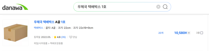 5. '우체국 택배박스 3호'를 검색하면 가로 34cm, 세로 25cm, 높이 21cm 크기의 상자를 찾을 수 있습니다. 책이나 옷가지 등 일상적인 물건을 보내기에 적당한 크기입니다.