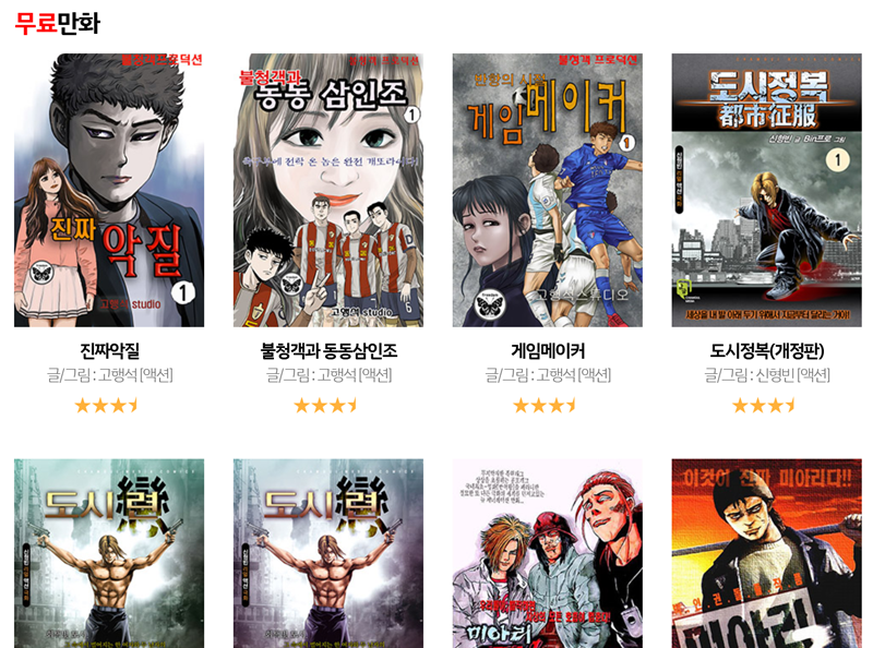 8. 특히 '무료만화' 섹션에서는 여러 작가들의 만화를 아무런 부담 없이 즐길 수 있도록 준비되어 있어 새로운 작품을 찾아보는 재미가 있습니다.