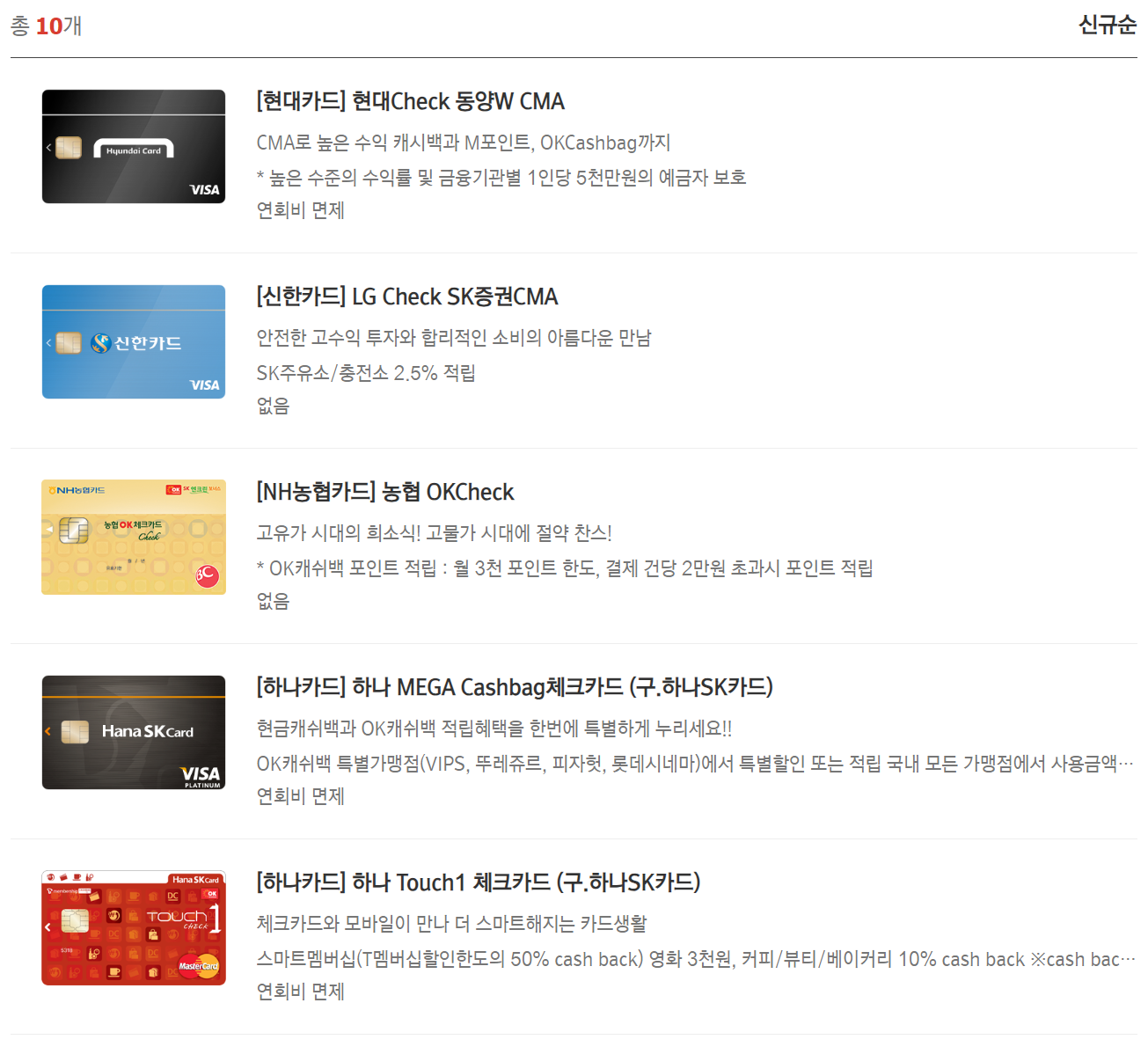 5. 체크카드의 경우에는 총 10개가 있으며 연회비가 있는 경우도 있으므로 꼭 미리 체크해보시기 바랍니다.