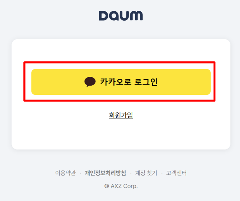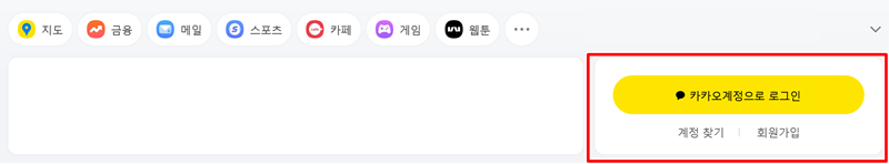 2. 로그인 화면으로 넘어가면 중앙에 보이는 '카카오로 로그인'을 선택해서 다음 단계로 이동합니다. 다른 메뉴들도 보이지만 이 부분을 선택하면 돼요.