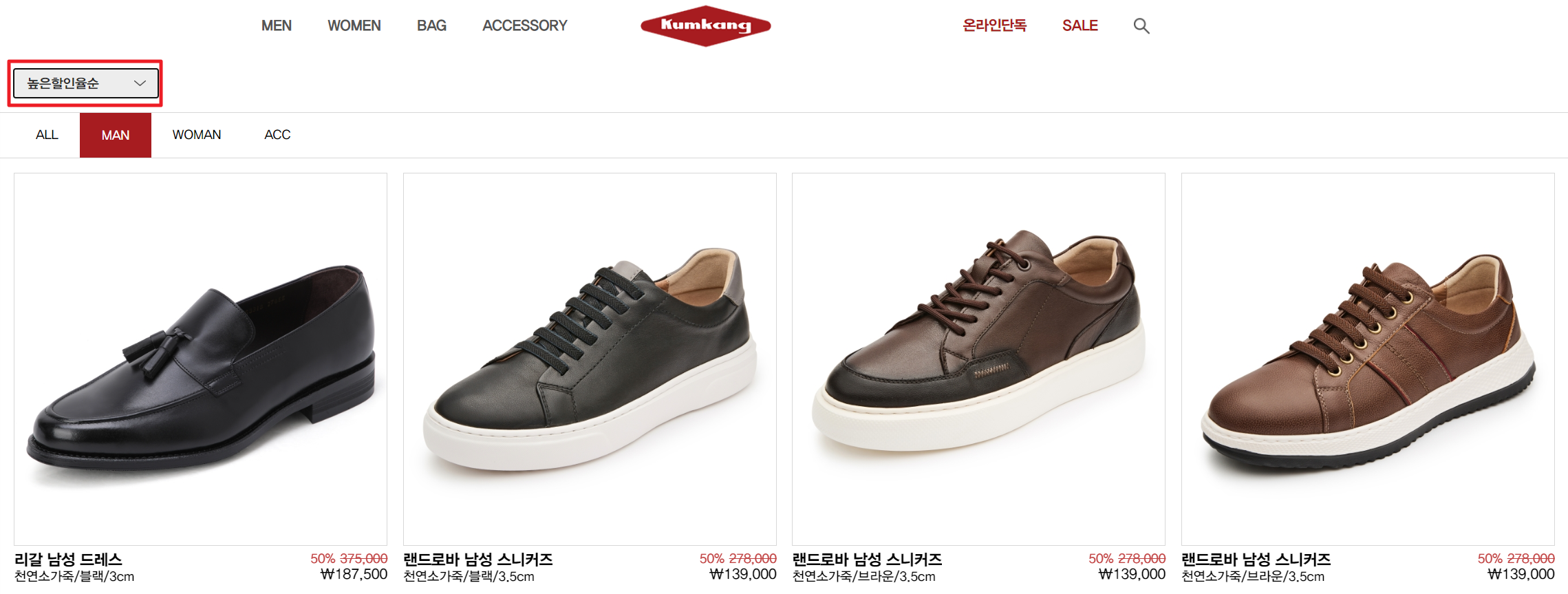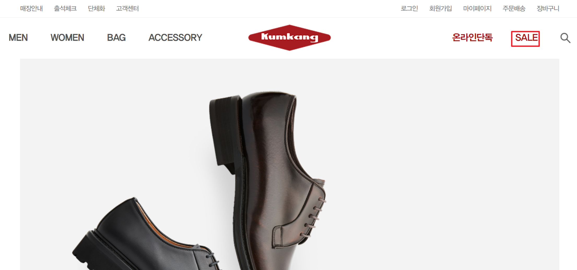 6. 금강제화 공식 온라인 판매처로 들어온 뒤에 ‘SALE’ 메뉴로 들어가면 할인 중인 상품을 찾아볼 수 있습니다.