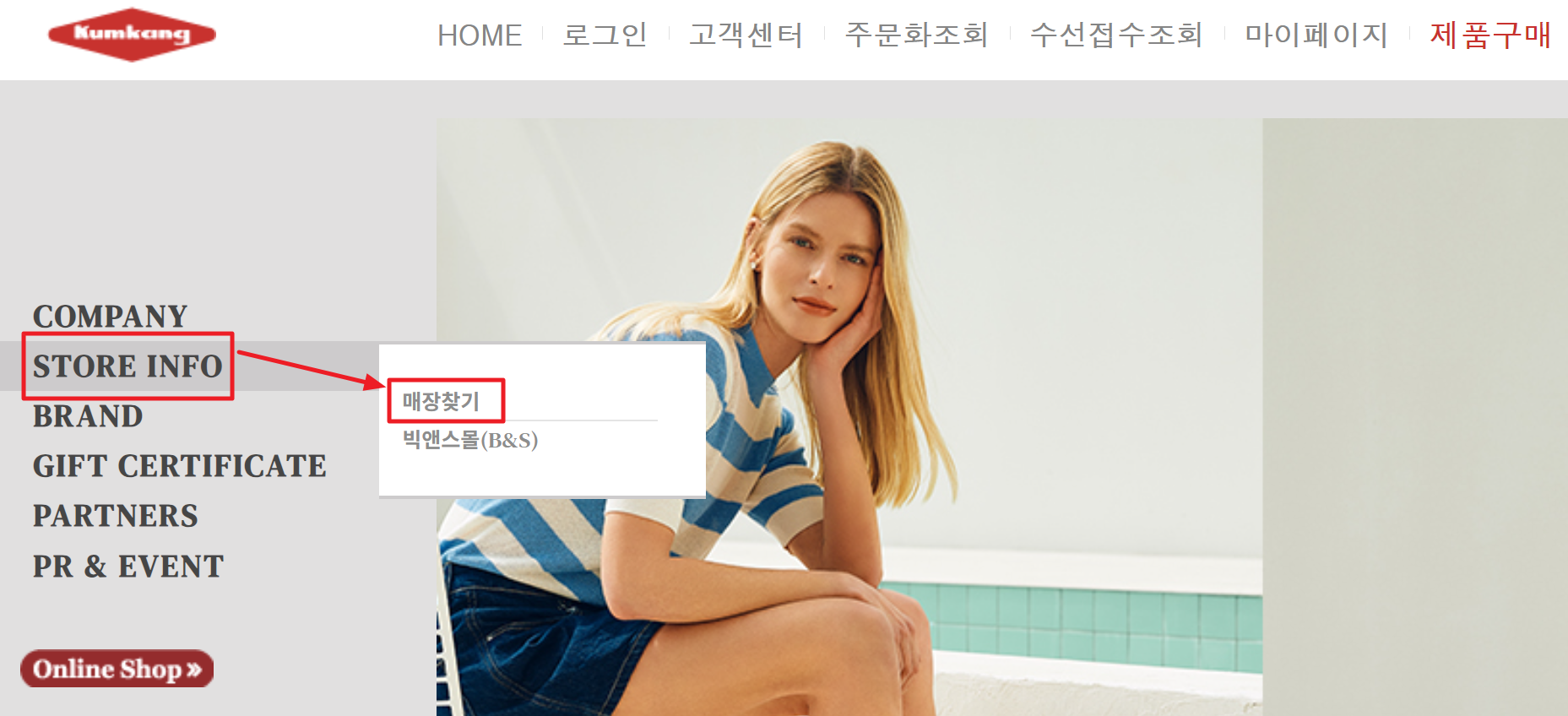 5. 요즘에는 온라인 샵에서도 저렴하게 제품을 판매하는 경우도 많은데요. 직접 가기 어려운 경우에는 좌측의 ‘Online Shop’을 눌러서 공식 온라인 판매 사이트로 접속하실 수 있습니다.