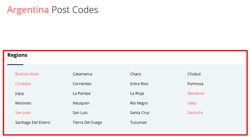 3. 국가를 선택하면 그 나라에 속한 모든 지역 목록이 나타납니다. 예를 들어 아르헨티나를 선택했다면 부에노스아이레스, 코르도바 등 여러 주 중에서 내가 찾으려는 주소를 선택하면 됩니다.
