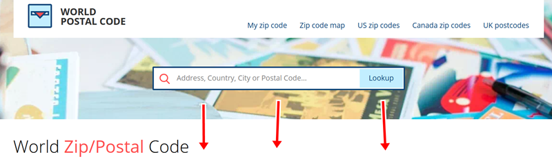 1. 검색 후 해당 홈페이지로 접속하면 메인 화면의 검색창에 찾고 싶은 국가나 도시, 주소 등의 정보를 입력하여 간편하게 우편번호를 찾아볼 수 있습니다. 주소의 일부만 알고 있어도 관련 정보를 확인할 수 있어 편리합니다.