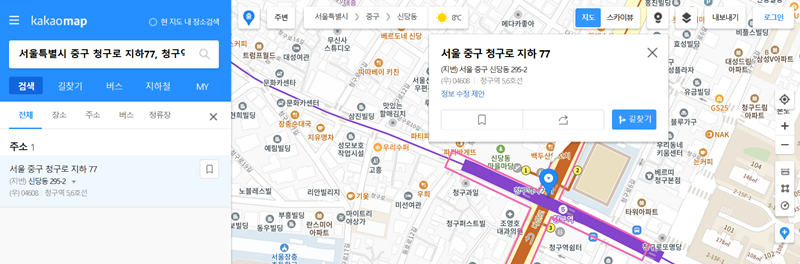 8. 지도보기를 선택하면 익숙한 지도 화면으로 연결되어 설치된 곳의 정확한 주소와 주변 모습을 파악할 수 있어 찾아가기 편해요.