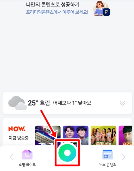 2. 앱 화면 아래쪽에 보이는 동그란 녹색 아이콘을 가볍게 눌러주세요. 다양한 기능으로 연결되는 창이 나타납니다.