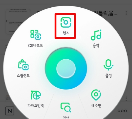 3. 여러 아이콘 중에서 카메라 모양의 '렌즈'를 선택해 주세요. 궁금한 대상을 비춰서 검색할 수 있는 화면으로 넘어갑니다.