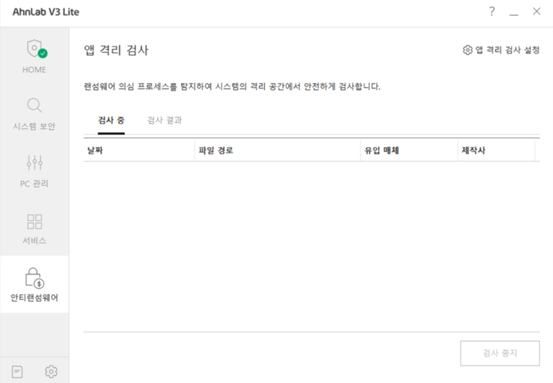 요즘에는 소중한 자료를 인질로 삼는 랜섬웨어 때문에 걱정이 많은데요, 이 프로그램에는 그런 위협을 막아주는 '안티랜섬웨어' 기능도 포함되어 있어요. 왼쪽 메뉴 목록에서 찾을 수 있으며, 의심스러운 활동을 하는 것들을 따로 떼어내 안전한 공간에서 살펴보니 한결 마음이 놓이고 든든한 기분이 들어요.