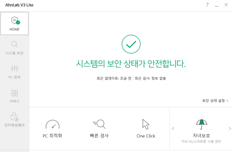 설치가 모두 끝나고 프로그램을 실행하면 현재 내 컴퓨터의 상태를 한눈에 볼 수 있는 화면이 나타나요. '시스템의 보안 상태가 안전합니다.'라는 초록색 문구가 보이면 마음이 놓이죠. 여기서부터 'PC 최적화'나 '빠른 검사' 같은 여러가지 세부적인 관리를 시작할 수 있는 출발점이라고 생각하시면 돼요.